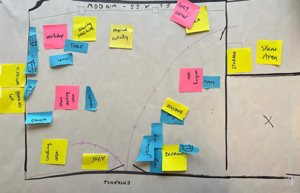 We explored the idea of dividing the space. we have lived in the room for about a month, the question was How is it functioning? Is it addressing the needs identified during check-in?